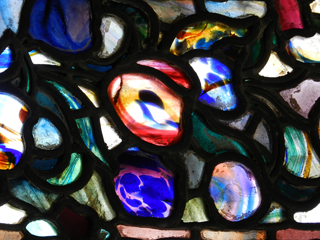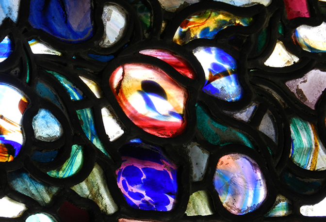 Five of our staff have recently returned from a successful annual touring conference, organised by the BSMGP. During this four day event approximately 50 delegates were chauffeured by coach to visit the stained glass gems in and around Leicestershire and Rutland. There was a broad range of top quality glass on offer, with an emphasis on Arts & Crafts glass, notably that of Theodora Salusbury (1875-1956) at All Saints Church, Newtown Linford. The glazing scheme attributed to Gaylon Hone (active 1492-1526) in the chapel at Withcote, and the adjacent house were tremendously atmospheric. We are grateful to Derek Hunt for opening up his workshop for the BSMGP contingent; it was very enjoyable, and he made everyone feel very welcome. A major highlight was the wonderfully decorative glass at Groby, by Leonard Walker (1877-1964). Manufactured in the mouth-blown slab and pressed slab method, distinct colour variations were achieved to marvellous effect. So entranced were HWG by this window we have offered to clean it for free when next passing! The atmosphere throughout the conference was very convivial, it was a pleasure to be in such good company.