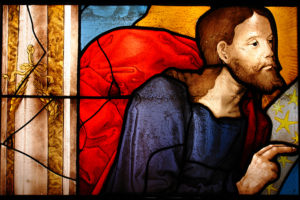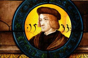 Other work has included the conservation of a truly superb 3-light window by Valentin Bousch (circa 1490-1541) a Renaissance glazier and painter from Strasbourg. He was particularly active in the Lorraine and Metz regions; his glass predominates in the choir and south transept of Metz Cathedral. He carefully designed the lead matrix in his panels, so that it would not interrupt the scene, and he pushed the boundaries of the medium; the pieces of glass he used were large and technically difficult to produce, but they allowed freedom of painted expression.