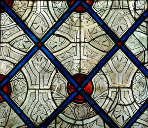 The term ‘grisaille’ refers to delicate geometric or leaf patterns of regular design painted on or leaded into white glass, produced predominantly in the thirteenth and fourteenth centuries. These particular panels are Norman French and date from between 1270 – 80. The pot-metal red and blue latticework overlay the intricate painted patterns applied to the clear glass. Prior to conservation the panels were in a poor condition. Therefore Holy Well Glass removed the failing lead and carried out necessary edge bonding repairs to regain the clarity of the original design. Finally the panels were re-leaded.